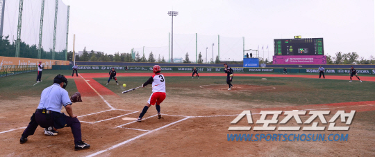 29일 오후 인천 송도LNG야구장에서 2014 인천 아시안게임 소프트볼 예선전 한국과 일본의 경기가 열렸다. 한국 박수연이 일본 선수를 상대로 힘차게 볼을 던지고 있다.
