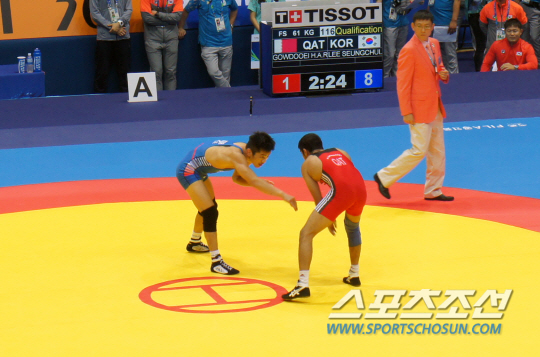 한국 레슬링 자유형의 금메달 후보인 이승철(26·상무)이 첫 판을 시원하게 테크니컬 폴승(10점차 이상 승)으로 장식했다.