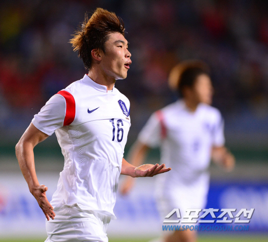 30일 오후 인천 문학경기장에서 2014 인천 아시안게임 축구 남자 4강 한국과 태국의 경기가 열렸다. 전반 선취골을 성공한 한국 이종호가 환호하고 있다.