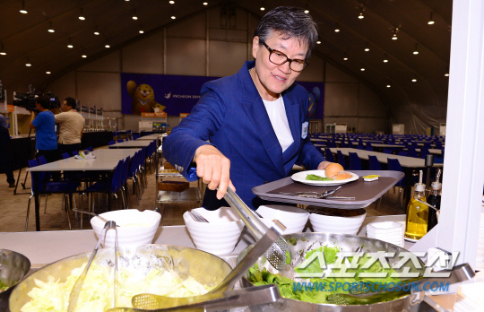 아침에 6시에 눈을 뜨면 7시반부터 단장회의에 들어간다. 45개국 단장들이 국가별 이슈와 민원을 쏟아낸다. 9시 전후 회의가 끝나면 빵 하나 챙겨먹고, 각국 NOC 관계자 등 VIP들을 영접한다. 현장도 부지런히 체크한다. 가장 심혈을 기울인 부분은 식사문제다. "일반 국제행사와는 다르다. 고칼로리를 섭취해야 하고 매끼니를 골고루 먹어야하는 선수를 대상으로 한, 특별한 곳이다. 촌장으로 온 만큼 선수 편의 문제는 내가 무조건 해결해야할 부분"이라고 말했다. 식당에 음식은 떨어지지 않는지, 온도는 적당한지, 이슬람교도들을 위한 할랄 음식은 잘 서비스되고 있는지 '엄마의 마음으로' 일일이 챙긴다. "초반 단장회의에서 할랄 음식이 부족하다는 이야기가 나왔다. 당초 예상보다 수요가 많았다. 배식대를 2개 만들고 1000개 이상 좌석을 더 늘렸다." 때로는 정문에서 3시간 넘게 직접 주차단속에도 나섰다. 북한선수단에 대해 묻자 "북한이라고 특별할 것 없다. 자연스럽게 '옆집아저씨' 정도로 생각하면 된다. 원하는 부분만 해결해주면 된다. 물론 말이 통하니 편한 것은 있다"며 웃었다. 보름 정도 흐른 지금, 단장회의에서 불평불만이 눈에 띄게 줄었다. "얼굴도 익고, 진심을 알아주는 것같다. 이제 단장회의에서 가끔씩 '고맙다'는 인사도 받는다"며 웃었다. "나이가 들어서인지 더 잘해주고 싶은 마음만 많다"고 했다. "도저히 할 수 없는 것은 못하지만 당장 할 수 있는 것은 해야하지 않나."