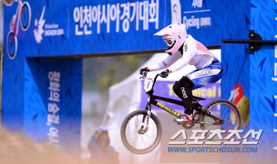 1일 오전 인천 강화아시아드 BMX 경기장에서 2014 인천 아시안게임 사이클 BMX 여자 시드전이 열렸다. 한국 박미니가 힘차게 달리고 있다.