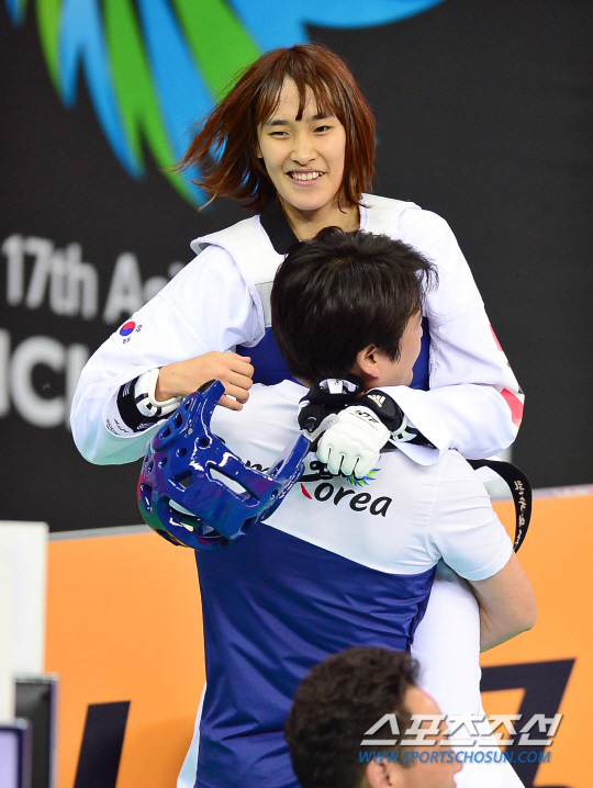1일 오후 인천 강화고인돌경기장에서 2014 인천 아시안게임 태권도 여자 46kg 결승전 한국 김소희와 대만 린완팅의 경기가 열렸다. 금메달을 차지한 한국 김소희가 기뻐하고 있다.