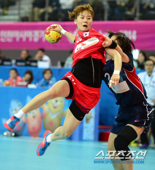 인천아시안게임 여자 핸드볼 한국과 일본의 결승전이 1일 인천 선학핸드볼경기장에서 열렸다. 한국 김온아가 슈팅을 시도하고 있다.