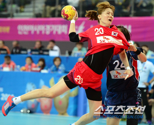인천아시안게임 여자 핸드볼 한국과 일본의 결승전이 1일 인천 선학핸드볼경기장에서 열렸다. 한국 김온아가 슈팅을 시도하고 있다.