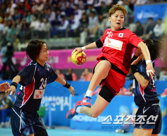 인천아시안게임 여자 핸드볼 한국과 일본의 결승전이 1일 인천 선학핸드볼경기장에서 열렸다. 한국 김온아가 슈팅을 시도하고 있다.