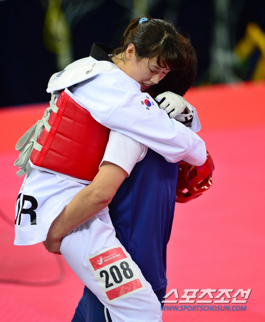 1일 오후 인천 강화고인돌경기장에서 2014 인천 아시안게임 태권도 여자 57kg 결승전이 열렸다. 금메달을 차지한 한국 이아름이 기뻐하고 있다.