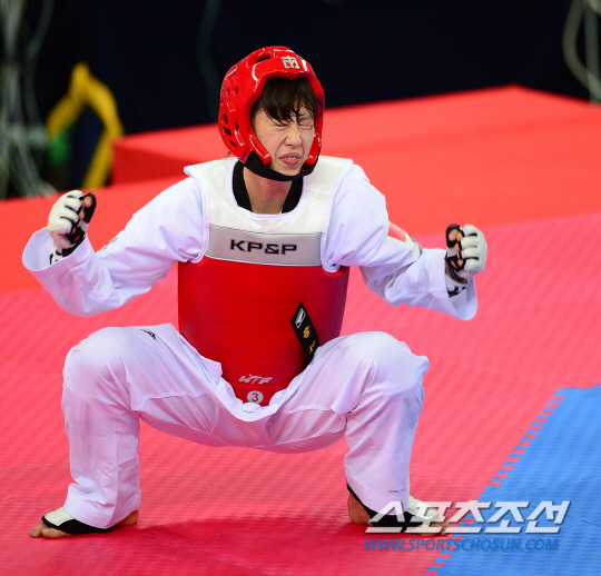 1일 오후 인천 강화고인돌경기장에서 2014 인천 아시안게임 태권도 여자 57kg 결승전이 열렸다. 금메달을 차지한 한국 이아름이 기뻐하고 있다.