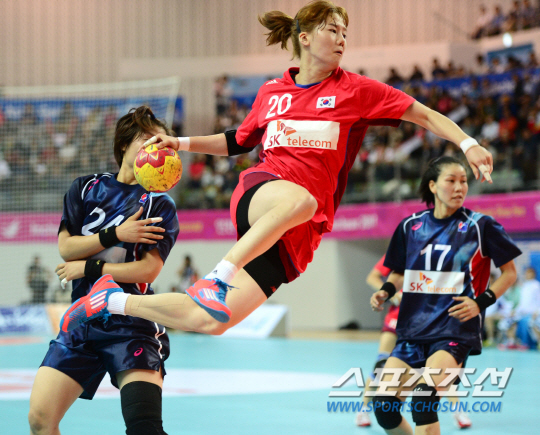 인천아시안게임 여자 핸드볼 한국과 일본의 결승전이 1일 인천 선학핸드볼경기장에서 열렸다. 한국 김온아가 슈팅을 시도하고 있다.