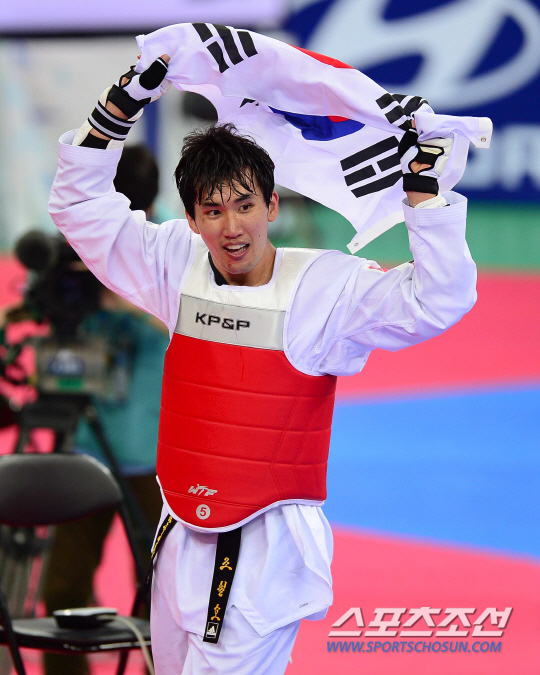 1일 오후 인천 강화고인돌경기장에서 2014 인천 아시안게임 태권도 남자 87kg 결승전이 열렸다. 금메달을 차지한 한국 조철호가 환호하고 있다.
