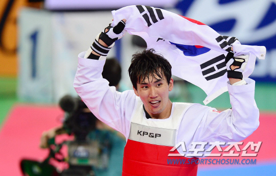 1일 오후 인천 강화고인돌경기장에서 2014 인천 아시안게임 태권도 남자 87kg 결승전이 열렸다. 금메달을 차지한 한국 조철호가 환호하고 있다.
