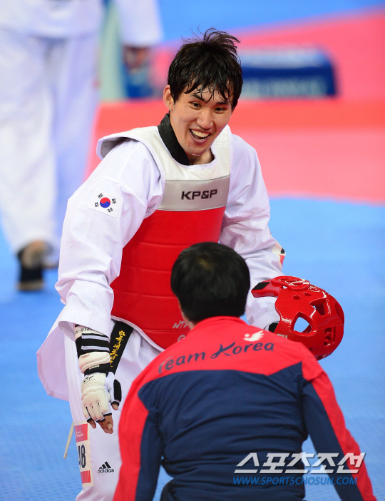 1일 오후 인천 강화고인돌경기장에서 2014 인천 아시안게임 태권도 남자 87kg 결승전이 열렸다. 금메달을 차지한 한국 조철호가 환호하고 있다.
