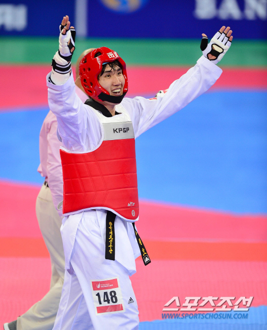 1일 오후 인천 강화고인돌경기장에서 2014 인천 아시안게임 태권도 남자 87kg 결승전이 열렸다. 금메달을 차지한 한국 조철호가 환호하고 있다.