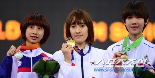 1일 오후 인천 강화고인돌경기장에서 2014 인천 아시안게임 태권도 여자 46kg 결승전이 열렸다. 금메달을 차지한 한국 김소희가 시상식에서 기뻐하고 있다.
