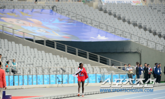 [AG포토] 텅 빈 주경기장, 박수 못 받은 女마라톤 우승자