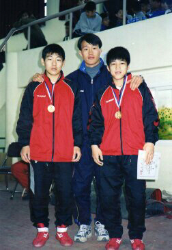 2002년 중학교 2학년 당시 전국 대회에서 금메달을 따낸 뒤 동기생, 코치와 함께 기념 사진을 찍은 김현우. 사진제공=김현우