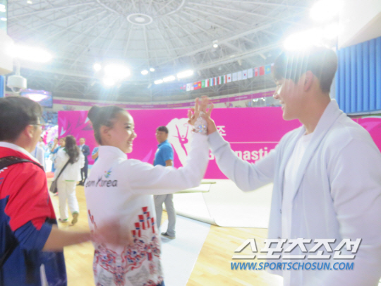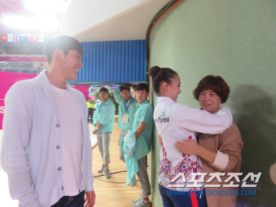 박태환은 금메달이 확정된 직후 손연재 어머니 윤현숙씨, 손연재의 멘토인 조수경 스포츠심리학박사와 함께 포디움 뒤에서 손연재를 기다렸다. 손연재가 나타나자 엄마 윤현숙씨가 벅찬 목소리로 "연재야! 연재야!" 딸의 이름을 불렀다. 손연재가 활짝 웃는 얼굴로 "엄마!" 하며 달려와 안겼다. 지난 4년간 앞만 보고 달려온 모녀는 또한번의 꿈을 이뤘다. 그간의 땀과 눈물이 금빛으로 보상받는 순간이었다. 눈시울이 뜨거워졌다. 박태환은 이 모습을 한발 떨어진 채 흐뭇한 표정으로 지켜봤다. 이어 '오빠' 박태환을 발견한 손연재의 표정이 환해졌다. "연재야 축하해!"라는 오빠의 축하인사와 동시에 '절친 남매'가 활짝 웃었다. 말이 필요없었다. 짜릿한 승리의 하이파이브를 나눴다. 훈훈한 세리머니였다. 손연재는 기자회견에서 박태환의 응원에 고마움을 표했다. "와주셔서 정말 힘이 됐다. 감사하게 생각한다"며 활짝 웃었다. "나 역시 아시안게임에서 대한민국 국민으로서 응원 많이 했다는 말을 전하고 싶다"고 했다. 인천=전영지 기자 sky4us@sportschosun.com