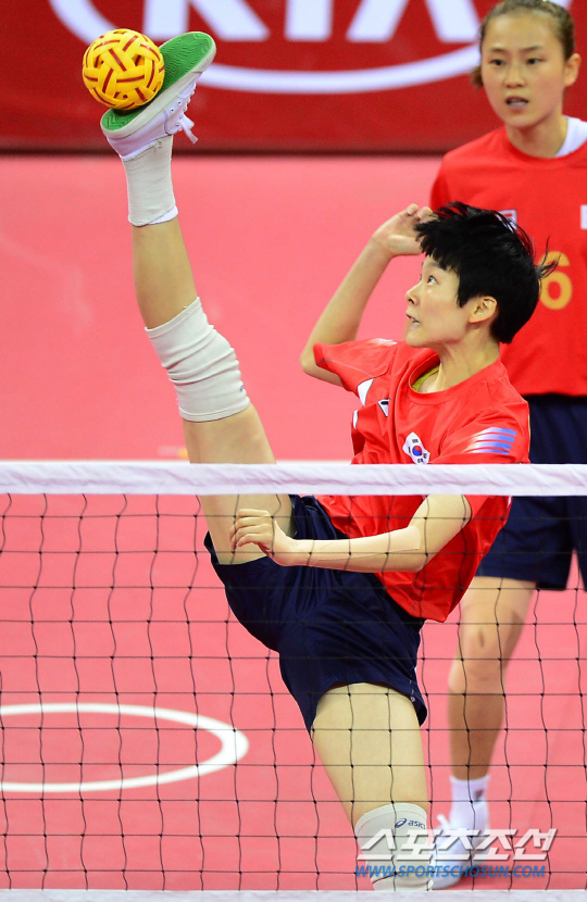 [AG포토] 세팍타크로 김이슬 '발에 붙었어'