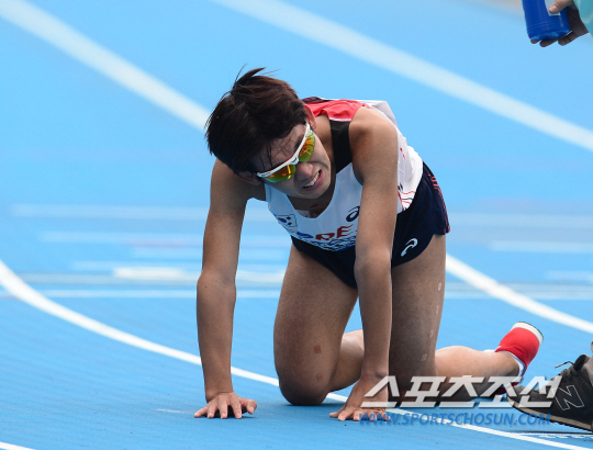 3일 인천 송도 센트럴파크 앞을 출발해 인천아시아드주경기장으로 들어오는 코스에서 펼쳐진 인천아시안게임 남자 마라톤에서 한국 심정섭이 10위로(2시간23분11초)로 골인한 후 쓰러져 있다. 1위는 바레인 마흐부부(2시간12분38초). 2위는 일본의 마추무라 코헤이(2시간12분39초), 3위 카와우치 유키(2시간12분42초)