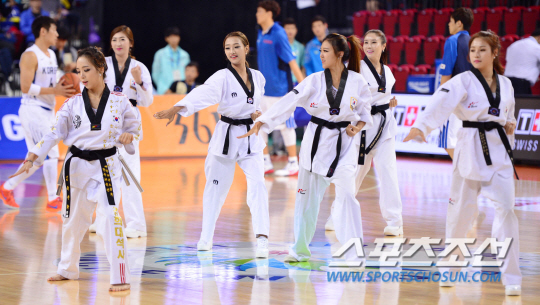 [AG포토] 남자 농구 치어리더 '특이한 태권도 응원'
