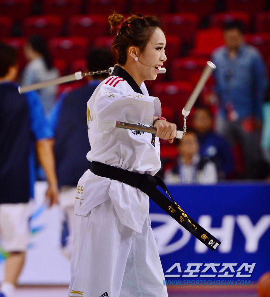 3일 오후 인천 삼산월드체육관에서 2014 인천 아시안게임 농구 남자 결승 한국과 이란의 경기가 열렸다. 치어리더들이 태권도 응원을 벌이고 있다.