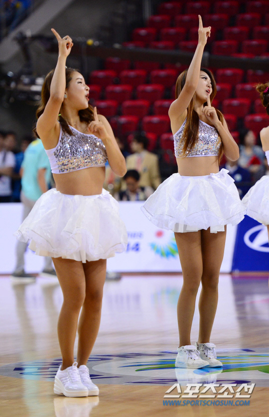 3일 오후 인천 삼산월드체육관에서 2014 인천 아시안게임 농구 남자 결승 한국과 이란의 경기가 열렸다. 치어리더들이 응원을 벌이고 있다.