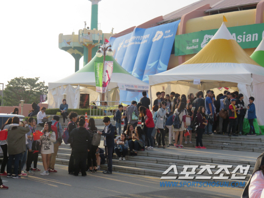 3일 인천아시안게임 탁구경기가 열리는 수원실내체육관은 탁구팬들로 가득찼다. 이날 오후 2시 펼쳐진 혼합복식 결승전 북한-홍콩전에는 북한 선수단 전원과 이들을 응원하는 탁구팬들로 만원을 이뤘다. 김혁봉-김정조의 우승이 확정되자 북한 응원단은 "잘했다 김혁봉" "잘했다 김정"을 연호하며 열렬한 기쁨을 나타냈다.