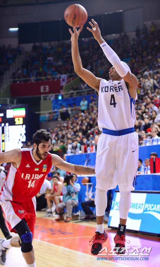 3일 오후 인천 삼산월드체육관에서 2014 인천 아시안게임 농구 남자 결승 한국과 이란의 경기가 열렸다. 3쿼터 한국 문태종이 3점슛을 성공시키고 있다.