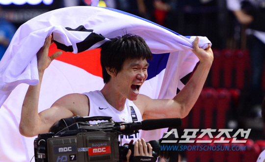 [AG포토] 김주성 '내 인생 마지막 태극기 세리머니'