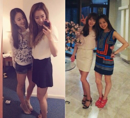공개된 사진 속 김윤희와 손연재가 나란히 서서 카메라를 향해 미소 짓고 있다. 두 사람은 리듬체조 선수답게 늘씬한 몸매를 과시하며 상큼발랄하면서도 청순한 미모를 과시해 눈길을 끈다.