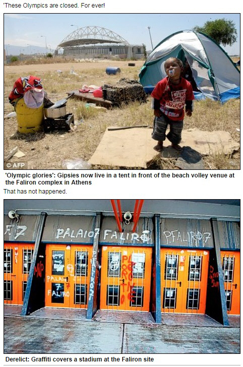 장밋빛 미래를 꿈꾸며 경기장 건설에 천문학적인 액수를 쏟아부었지만, 향후 활용 계획 부재와 뜻하지 않은 변수에 부딪혀 무용지물로 전락하기도 힌다. 활용 계획 부재의 대표적인 사례는 그리스다. 근대 올림픽 108년만의 귀환을 축하하는 장이었던 2004년 아테네올림픽은 당시 과도한 투자로 인해 국가 전체가 경제 장기침체에 시달리는 최악의 결과를 맛봤다. 그리스는 주경기장인 아테네 올림픽 스타디움을 비롯해, 아테네 올림픽 스포츠 컴플렉스, 팔리로 연안 올림픽 컴플렉스, 올림픽 실내외 수영센터 등을 짓는데 무려 15조원을 투자했다. 하지만 올림픽이 끝난 후 현실은 참혹하기만 하다. 사실상 휴점 상태가 된 경기장은 집시들의 주거지로 활용되고 있으며, 쓰레기와 낙서로 폐허가 되어버렸다. 무계획이 낳은 참사다. 당시 아테네올림픽 조직위원회 관계자였던 나소스 알레브라스 한 인터뷰에서 "올림픽 이후 올림픽 인프라를 어떻게 활용할지에 대해서 생각해보지 않았다"고 실토했다. 국제 소프트볼 연맹 회장이 아름다운 경기장이 사장되는 것이 아쉬워 아테네시측에 자신들이 모든 관리 비용을 부담할테니 소프트볼 경기를 치르게 해달라고 수년간 요청했지만, 아무런 답변도 듣지 못했다는 일화는 아테네올림픽이 얼마나 무계획적으로 치러졌는지 잘 보여주는 대목이다.