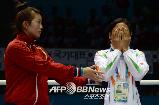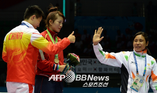 2014년 인천 아시안게임 여자 복싱 시상식에서 판정에 불만을 품고 메달 수여를 거부했던 인도의 라이슈람 사리타 데비가 사과했다.