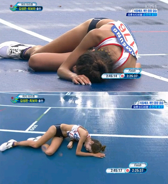 대표팀 관계자는 "최보라가 2011년 대구 세계육상선수권대회 때 3시간10분6초를 기록했다"며 "앞선 대회에서 2시간34분대에 완주한 선수가 그렇게 기록이 떨어지면 레이스를 포기한다. 그런데 최보라는 끝까지 뛰었다"고 전했다. <스포츠조선닷컴>
