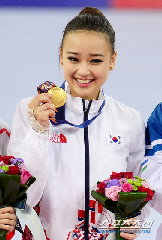 손연재는 2일 인천 남동체육관에서 열린 인천 아시안게임 리듬체조 개인전에서 총점 71.699점의 압도적인 점수로 1위에 올라 금메달을 목에 걸었다.