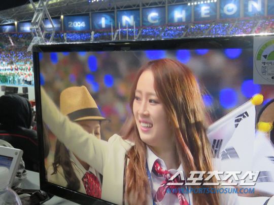 리듬체조 사상 최초로 개인전 금메달을 목에 건 손연재가 8인의 기수단으로 선정돼 태극기를 들고 입장한 직후 각국 선수단의 입장이 이어졌다. 김주영 리듬체조대표팀 코치와 함께 김윤희, 이다애, 이나경 등 리듬체조 미녀들이 함께 입장했다. 중계 카메라가 미녀들의 행진을 놓치지 않았다. 김윤희의 얼굴이 잇달아 클로즈업 되자 장내에는 환호성이 울려퍼졌다. 힘차게 태극기를 흔들며 화답했다.