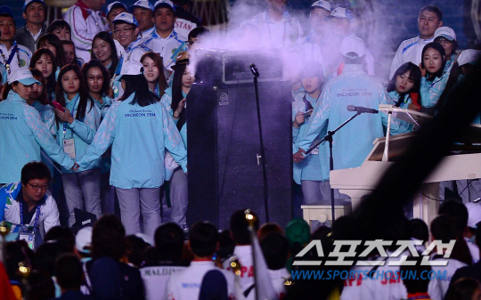 4일 오후 인천아시아드 주경기장에서 2014 인천 아시안게임의 폐막식이 열렸다. '평화의 물결, 아시아의 미래'라는 슬로건을 내걸고 16일간의 열전을 거듭한 '제17회 인천 아시안게임'이 인천아시아드주경기장에서 열리는 폐회식을 끝으로 대단원의 막을 내렸다. 한국은 수영과 육상, 야구와 축구 등 36개 종목에서 열전을 벌인 가운데 총 금메달 79개을 획득해 5회 연속 종합 2위를 수성하며 목표를 달성했다. 폐막식에서 씨앤블루의 공연이 끝난 후 엠프에서 연기가 나고 있다.