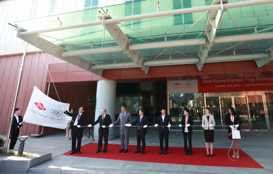 한국다우케미칼은 2018년 평창동계올림픽을 1200여일 앞두고 14일 경기도 화성에 위치한 다우케미칼 전자재료 글로벌 R&D 센터 '다우 서울 테크놀로지 센터(DSTC; Dow Seoul Technology Center)'에서 올림픽 공식 파트너로서 2018년 평창동계올림픽의 성공적 개최를 위한 올림픽기 게양식을 진행했다.