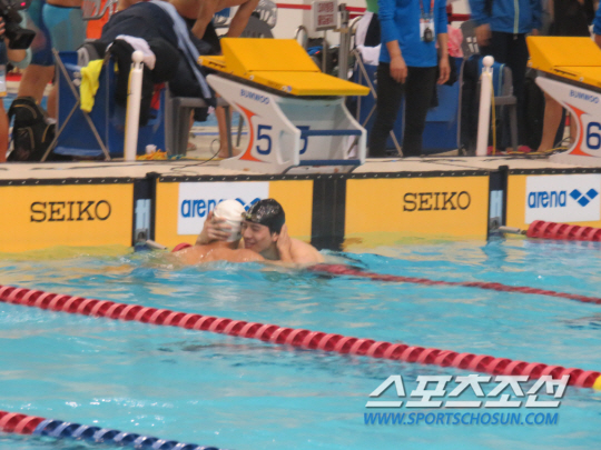 박태환의 '뒷심' 스퍼트는 여전히 눈부셨다. 인천선발은 3번 영자까지 1위 경기선발에 4초20 뒤진 3위였다. 박태환은 발군이었다. 자신이 책임진 600~800m 구간을 1분46초65로 주파하며 승부를 뒤집었다. 2위 경기선발 마지막 영자 박민규는 동구간에서 1분51초88, 3위 전북선발 마지막 영자 임재엽은 1분52초 87을 기록했다. 괴력의 스트로크를 선보이며 4초 이상 뒤진 채 출발한 레이스를 뒤집었다. 최종기록은 7분24초89, 경기선발(7분25초92)보다 1.03초 앞선 1위로 레이스를 마쳤다. 구간별 기록은 첫 600~650m에서 24초65, 650~700m에서 27초45, 700~750m에서 27초37, 마지막 750~800 구간에서 27초18을 기록했다. 통상 박태환의 마지막 구간기록은 25~26초대다. 계영이 첫 종목이었고, 200-400m 등 주종목 경기가 연일 이어지는 만큼 체력을 안배하는 모습이었다. 마지막 50m에서 여유있게 1위로 치고 나온 후 금메달을 확신한 듯 27초대로 레이스를 마무리했다. 터치패드를 찍은 후 오랜 동료인 경기선발 박민규와 가쁜 호흡으로 서로 끌어안고 격려하는 모습 역시 훈훈했다.