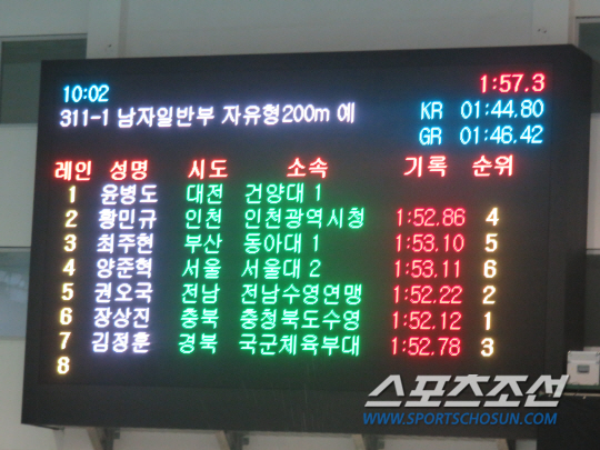 박태환은 31일 오전 10시 펼쳐진 남자자유형 200m 예선에서 2조 4번레인에 나선 박태환은 1분51초69의 기록으로 가장 먼저 터치패드를 찍었다. 장상진(충북)이 1분52초12로 2위, 권오국(전남)이 1분52초22 3위 기록으로 예선을 통과했다. 첫 50m 구간을 26초34 3위로 통과한 후 50~100m 구간에서 55초48(29초13) 4위로 턴했다. 100~150m에서도 1분24초47의 기록으로 4위를 유지했다. 마지막 50m에 승부를 걸었다. 마지막 25m를 남기고 거침없이 치고 나오며 예선 참가선수 14명 가운데 유일하게 51초대 기록으로 결승에 올랐다.
