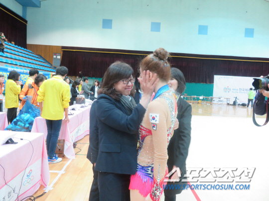 오른무릎, 발목 인대 파열 등 만신창이가 된 몸으로 꿈을 향해 마지막까지 도전을 멈추지 않았다. 제주 전국체전을 15년 리듬체조 인생을 마무리하는 무대로 삼았다. 이날 초반 후프에서 두차례 수구를 놓치는 치명적인 실수를 범하며 13점대에 머물렀지만 이후 볼, 곤봉, 리본에서 16점대 점수를 찍었다. 마지막 곤봉 연기 직후 누구보다 오래, 누구보다 묵묵히 리듬체조를 지켜온 한 선수를 향해 뜨거운 갈채가 쏟아졌다. 김윤희는 눈물이 그렁그렁 맺힌 눈으로 관중석을 향해 손을 흔들었다.시상대 가장 높은 곳에서 다사다난했던 리듬체조 선수생활을 마무리했다. 시상식 직후 김윤희의 마지막 무대를 기념하기 위해 대한체조협회가 꽃다발 증정식을 가졌다. 가장 오래, 최선을 다해 리듬체조 현역으로 달려온 선수의 투혼과 열정을 치하했다. 김윤희가 또다시 참았던 눈물을 왈칵 쏟았다. 후배들이 '맏언니' 김윤희를 둘러싸고 축하와 감사의 인사를 전했다. 김윤희의 시작과 끝을 함께 지킨 김지영 대한체조협회 기술위원장, 서혜정 기술부위원장. 김지희 전 대표팀 코치, 차상은 MBC해설위원 등 스승들도 따뜻한 포옹으로 애제자의 은퇴 무대를 축복했다.