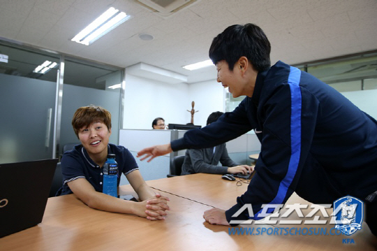 지소연의 절친 김혜리가 SNS 질문에 응답하지 않는다며, 사무실을 급습했다. 사진 제공=대한축구협회