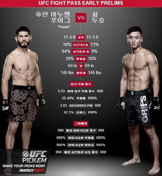 2009년 11월 종합격투기에 데뷔한 뒤 DEEP 등 주로 일본 단체에서 활동하며 연승 행진을 벌이던 최두호는 지난해 말 UFC와 계약했다.