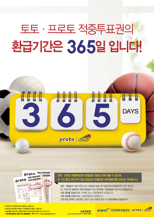 국민체육진흥공단(www.kspo.or.kr)이 발행하는 체육진흥투표권 수탁사업자인 스포츠토토(www.sportstoto.co.kr)는 참가자들이 기상이변이나 경기 취소 등으로 일어나는 토토 게임의 환불금액과 적중상금을 찾아가도록 고지했다.