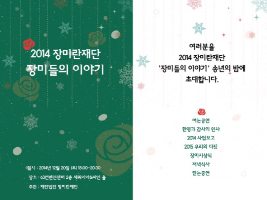 장미란재단의 2014 송년의 밤 '장미들의 이야기'가 20일 오후 6시에 서울 63컨벤션센터 2층 세쿼이아홀에서 열린다.