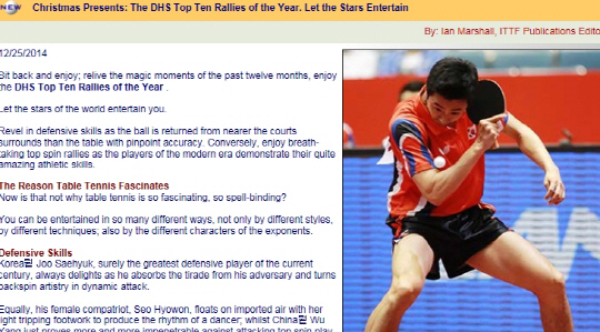 ITTF는 크리스마스를 맞아 공식 홈페이지를 통해 '크리스마스 선물'이라는 타이틀로 올시즌 최고의 랠리 10선을 뽑았다. 유튜브를 통해 소름 돋는 랠리 영상이 공개되자 전세계 탁구팬들이 열광하고 있다.