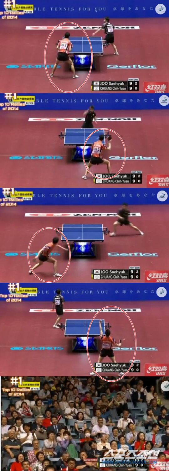 ITTF는 '탁구가 매력적인 이유'로 정말 다양한 방법, 기술, 개성, 스타일로 상대를 공략하는, 일진일퇴의 숨막히는 랠리를 꼽았다. 수비 랠리의 달인으로 대한민국의 주세혁과 서효원을 거침없이 뽑아올렸다. 도쿄세계선수권 8강 대만전에서 대만 에이스 추앙치유엔을 상대한 주세혁의 17회의 폭풍 랠리는 당당히 1위에 선정됐다. 세트스코어 2-0, 3세트 9-9 상황에서의 숨막히는 랠리였다. 베테랑 오상은, 유승민이 없는 첫 메이저 대회, 나홀로 어린 후배들을 이끌고 나선 세계선수권 단체전이었다. 한국 탁구, 세대교체 과정에서 '징검다리' 역할을 하겠다고 선언했다. 파리세계선수권 단식 2위, 세계 최고의 '공격하는 수비수' 주세혁은 '맏형'으로서의 책임감으로, 사력을 다했다. 추앙치유엔의 강력한 드라이브를 깊숙한 커트로 깎아내리다 11번째 랠리부터는 공격으로 전환했다. 상대의 강공에 강공으로 맞섰다. 17회의 폭풍랠리, 힘과 힘의 대결에서 끝내 승리한 주세혁이 오른손을 번쩍 치켜올리며 환호하는 장면에선 전율이 흐른다. 마롱, 장지커, 미즈타니 준, 드미트리히 옵차로프 등 중국, 일본, 독일의 톱랭커들을 압도하는, 실로 대단한 랠리였다.