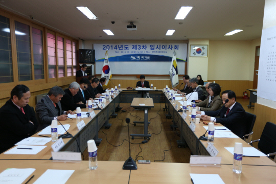 국기원은 30일 오후 2시 국기원 제2강의실에서 홍문종 이사장 주재로 '2014년도 제3차 임시이사회'를 개최하고, 배재성 안병태 윤상호 이세창 이철규 황인정 등 6명을 신임 이사로 선임했다.