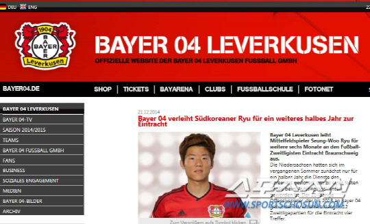 지난해 12월22일 독일 분데스리가 명문클럽 레버쿠젠은 대한민국 미드필더 류승우의 완전이적을 발표했다. 계약기간은 2018년 6월까지다. 브라운슈바이크 임대 기간도 6개월 연장됐다. 브라운슈바이크가 12경기에서 4골을 터뜨리며 팀이 4위에 오르는 데 혁혁한 공을 세운 류승우를 원했다. 지난해 초 제주에서 레버쿠젠으로 임대된 류승우는 올시즌 레버쿠젠에서 2부리그 브라운슈바이크로 재임대됐다. 4-4-2 포메이션의 공격수서 특유의 영리한 움직임으로 찬스를 창출했다. 류승우는 득점뿐 아니라 센스있는 패스와 드리블 돌파로 브라운슈바이크의 공격을 이끌었다. 11월 2일 알렌전 이후 8경기 연속 출전했고, 류승우가 나선 8경기에서 브라운슈바이크는 6승1무1패로 상승세를 탔다. 공격 파트너 니엘슨(17경기 8골)과 수시로 위치를 바꾸며 상대 수비를 교란시켰고, 헌신적인 플레이로 인정받았다. 최전방에서의 빛나는 활약은 완전이적으로 이어졌다. 독일 잔류의 꿈을 이룬 류승우가 휴식기 직후 새도전에 나선다. 브라운슈바이크에서의 6개월은 레버쿠젠행을 위한 치열한 준비기간이기도 하다.