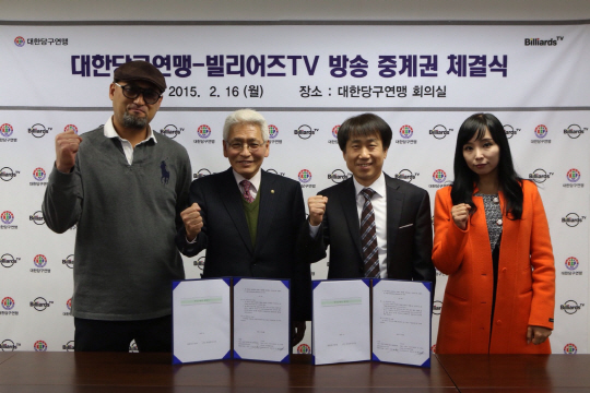 대한당구연맹(장영철 회장)과 빌리어즈 TV(유재수 대표이사)가 향후 3년간 방송중계권 계약을 맺었다.