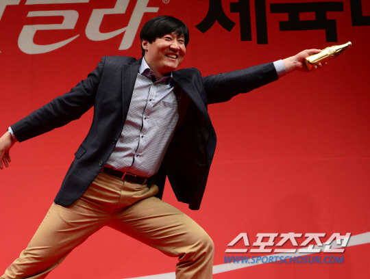 스포츠조선 제정 제20회 코카콜라 체육대상 시상식이 24일 오전 서울 소공로 웨스틴조선호텔 그랜드볼룸에서 열렸다. 1995년 제정된 아마추어 최고, 최대의 시상식인 코카콜라 체육대상은 올해로 20회를 맞는다. 20주년 레전드 트로피를 수상한 황영조 감독이 수상 세리머니를 펼치고 있다. 송정헌 기자 songs@sportschosun.com/2015.02.24