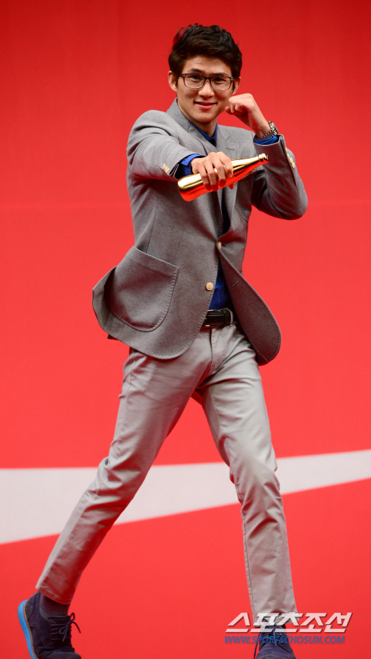 20주년 레전드 트로피를 수상한 양학선이 코카콜라 100박스가 경품으로 내걸린 베스트 포토제닉까지 수상하고 있다. 송정헌 기자 songs@sportschosun.com/2015.02.24